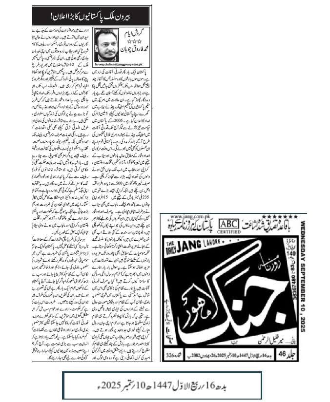 اکستان ایک بار پھر قدرتی آفات کی زد میں ہے۔ مون سون بارشوں کا وہ سلسلہ جس کا آغاز چند ہفتے قبل ہوا تھا، اب تک سینکڑوں قیمتی جانیں نگل چکا ہے اور ہزاروں خاندانوں کو کھلے آسمان تلے بے یار و مددگار چھوڑ گیا ہے۔ ان حالات میں امریکہ میں مقیم پاکستانیوں کی تنظیم ہیلپنگ ہینڈ نے سیلاب میں گھرے اپنے پاکستانی بھائیوں کیلئے 5ملین ڈالر کی امداد کا اعلان کیا ہے ۔ 2005ءکے پاکستان میں قیامت خیز زلزلے سے لیکر آج تک قدرتی آفات میں ہیلپنگ ہینڈ نے ہمیشہ دوسری فلاحی تنظیموں کی طرح آگے بڑھ کر مدد کی ہے ۔پاکستانی قوم اپنے ان محسنوں کو کبھی نہیں بھولے گی ۔ اس وقت سرکاری اعداد و شمار کے مطابق حالیہ بارشوں اور سیلاب کے نتیجے میں خیبرپختونخوا ، آزاد کشمیر ، گلگت و بلتستان ، کراچی اور پنجاب میں اب تک جاں بحق ہونے والوں کی تعداد ایک ہزار سے تجاوز کر چکی ہے۔ صرف خیبر پختونخوا میں 500سے زیادہ افراد لقمہ اجل بن چکے ہیں جبکہ کراچی جیسے بڑے شہر میں 235 ملی میٹر بارش کے نتیجے میں 15 افراد اپنی جانوں سے ہاتھ دھو بیٹھے۔ پنجاب میں بھی سیلاب نے ہر طرف تباہی مچا دی ہے ۔ یہ صرف اعداد و شمار نہیں، بلکہ کہانیاں ہیں ان گھروں کی جو ملبے کا ڈھیر بن چکے ہیں، ان ماؤں کی جو اپنے بچوں کو کھو چکی ہیں، بلوچستان اور سندھ کے کئی علاقے اب بھی شدید خطرے میں ہیں، کیونکہ بارشوں کا سلسلہ تھمنے کے بجائے مزید شدت اختیار کرتا دکھائی دیتا ہے۔ محکمہ موسمیات کے مطابق ابھی چند روز تک مزید دو بارشوں کے سلسلے متوقع ہیں جن سے نقصانات میں مزید اضافہ ہو سکتا ہے۔یہ سوال بار بار ہمارے ذہنوں میں ابھرتا ہے کہ آخر ہم ہر سال انہی مسائل کا سامنا کیوں کرتے ہیں؟ کیا یہ صرف قدرتی آفات ہیں یا ہمارے نظام کی ناکامی بھی اس میں شامل ہے؟ بدقسمتی سے پاکستان میں شہری منصوبہ بندی، نکاسی آب کے نظام اور ہنگامی صورتِ حال سے نمٹنے کے اداروں کی تیاری ہمیشہ ناقص رہی ہے۔ نتیجہ یہ کہ بارش کا پہلا قطرہ گرتے ہی نظام زندگی مفلوج ہو جاتا ہے اور عوام اپنی جان و مال بچانے کیلئے خود ہی جدوجہد پر مجبور ہوتے ہیں۔ کراچی جیسے شہر اور صوبہ پنجاب میں جہاں ملکی آبادی کا بڑا حصہ موجود ہے ۔بارش کے چند گھنٹے ہی نظام کو مفلوج کر دیتے ہیں۔ایسے مشکل وقت میں اگر کوئی امید کی کرن دکھائی دیتی ہے تو وہ وہی لوگ اور ادارے ہیں جو انسانیت کی خدمت کے جذبے سے میدان میں اترتے ہیں۔ ان اداروں نے حالیہ تباہ کاریوں کے دوران فوری ریسکیو اور ریلیف کا کام شروع کیا اور سیلاب زدہ علاقوں میں اپنی خدمات جاری رکھی ہوئی ہیں۔ ان کی ایمرجنسی رسپانس ٹیمیں ملک کے 12 متاثرہ اضلاع میں بھرپور طریقے سے سرگرم عمل ہیں۔ یہ ٹیمیں متاثرین کو پکا ہوا کھانا، پینے کا صاف پانی، خوراک کے پیکیجز اور دیگر ضروری اشیاء فراہم کر رہی ہیں۔ الحمدللہ، اب تک ان کاوشوں کے ذریعے ہزاروں افراد تک امداد پہنچائی جا چکی ہے۔ یہ اعداد و شمار بتاتے ہیں کہ کس طرح محدود وسائل کے باوجود، اگر نیت اور جذبہ خالص ہو تو بڑے پیمانے پر لوگوں کی زندگیاں سنواری جا سکتی ہیں۔ یہ ادارے متاثرہ خاندانوں کی بحالی اور طویل المدتی ترقی کیلئے بھی عملی اقدامات کر رہےہیں۔ انکی خدمات صرف ایمرجنسی ریلیف تک محدود نہیں بلکہ یہ تعلیم، یوتھ ایمپاورمنٹ، صحت و تغذیہ، اسکلز ڈیولپمنٹ، یتیموں کی کفالت اور شیلٹر ریلیف جیسے پروگرامز بھی کامیابی سے چلا رہے ہیں۔ بلاشبہ یہ کاوشیں ایک ہمہ جہت حکمتِ عملی کی عکاسی کرتی ہیں، جو متاثرہ خاندانوں کو فوری ریلیف سے لے کر پائیدار بحالی اور خود انحصاری تک کا سفر طے کرنے میں مددگار ہیں۔یہ حقیقت اپنی جگہ مسلم ہے کہ کوئی بھی ادارہ، چاہے وہ کتنا ہی بڑا کیوں نہ ہو، اکیلا ان مشکلات کا حل نہیں نکال سکتا۔ ایسے میں عوامی تعاون کی ضرورت اور بھی بڑھ جاتی ہےجبکہ یہ موقع ہے کہ حکومت اور پالیسی ساز ادارے خیبر پختونخوا ، آزاد کشمیر ، گلگت و بلتستان ، کراچی اور پنجاب میں ہونے والی سیلابی تباہی کو ایک سبق کے طور پر لیں۔