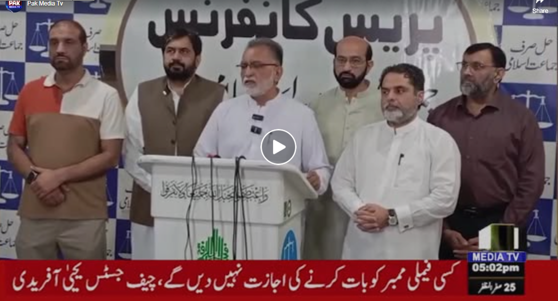 لاہور سے پاک میڈیا ٹی وی کے نمائندہ خصوصی شفیق چوہدری کی رپورٹ – جماعت اسلامی لاہور کی نجی ہاؤسنگ سوسائٹیوں کے متاثرین کے ساتھ یکجہتی کے لیے پریس کانفرنس