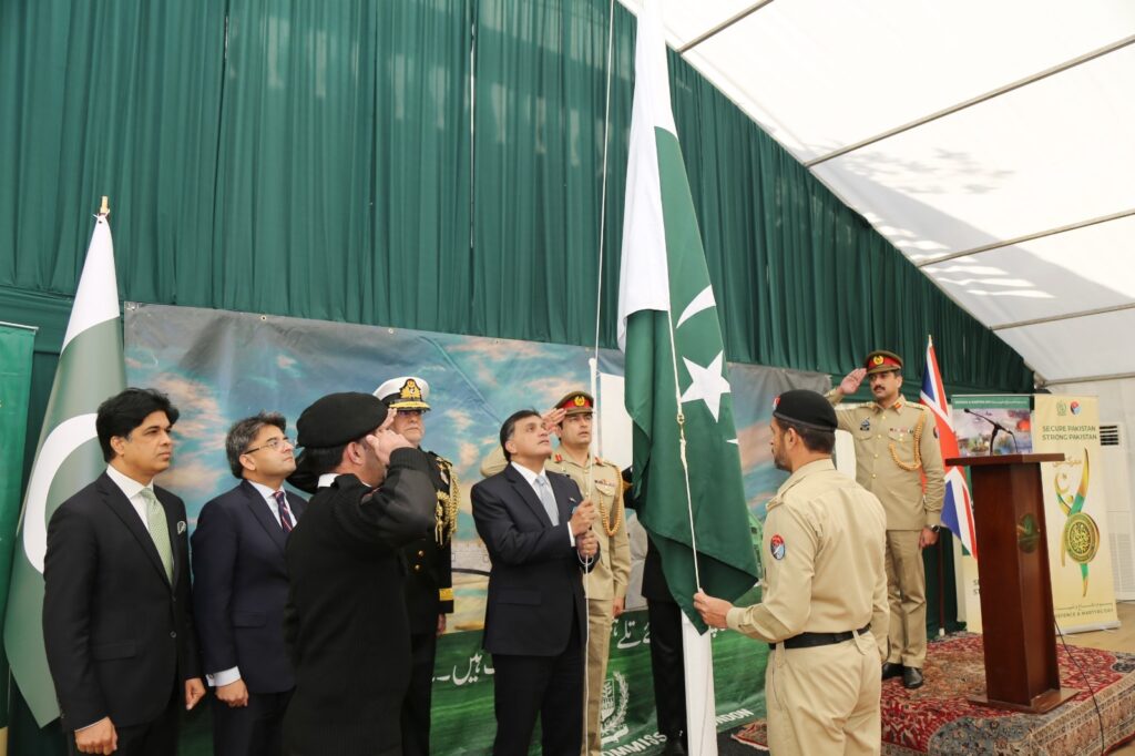 برطانیہ میں ہائی کمشنر ڈاکٹر محمد فیصل نے قومی ترانے کی دھن پر پاکستان کا جھنڈا لہرایا۔ تقریب کے دوران ہائی کمیشن کے افسران اور عملہ موجود تھے۔ کلیدی خطاب میں، برطانیہ میں پاکستان کے ہائی کمشنر ڈاکٹر محمد فیصل نے کہا کے یوم دفاع کے موقع پر ہر پاکستانی مادر وطن کے لیے اپنی وفاداری اور خدمت کے جذبے کو تازہ دم کرتا ہے۔