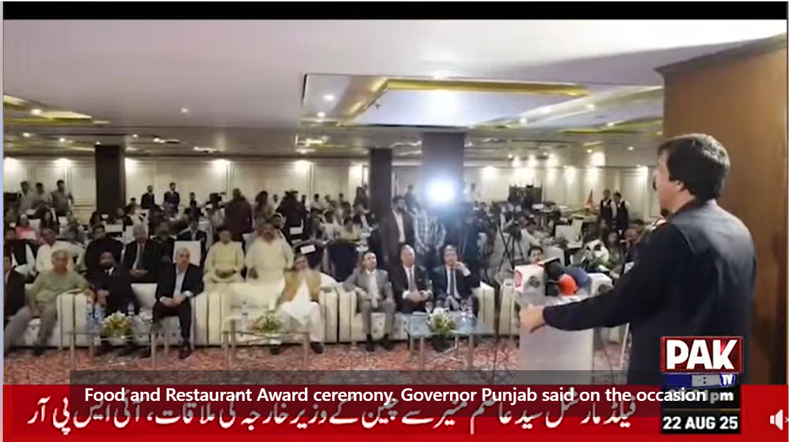 معیاری فوڈ سیاحت کے فروغ کا ذریعہ ہے، گورنر پنجاب کا انٹرنیشنل فوڈ ایوارڈز میں خطاب