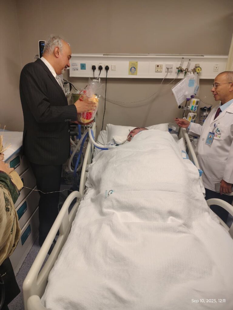 Ambassador Tirmizi also met with Pakistani patients in the hospital and inquired about their health, and wished them a speedy recovery. He praised the doctors, surgeons, and paramedical staff for their professionalism and compassionate care and assured both patients and hospital leadership of the Embassy’s full support, particularly in facilitating safe repatriation to Pakistan.
