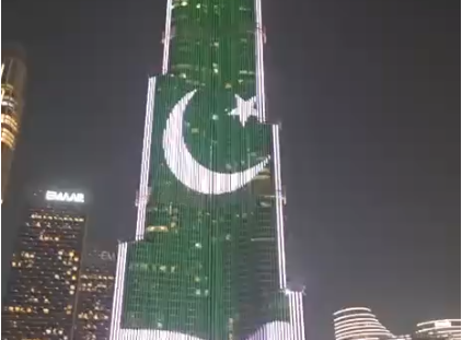 Iconic Burj Al Khalifah Glittering with Pakistani Flag Tonight in Dubai UAE